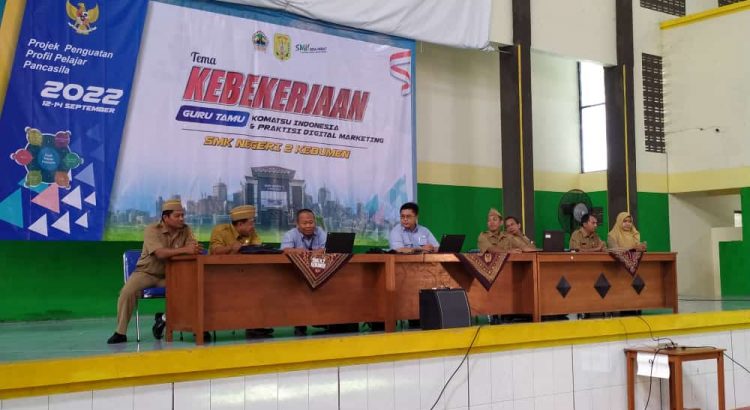 KEBUMEN, SMK Negeri 2 Kebumen, pada tanggal 12-14 September 2022 bertempat di GOR kebanggaan SMK Negeri 2 Kebumen berlangsung Kegiatan untuk mengimplementasi Kurikulum Merdeka dengan melaksanakan kegiatan Projek Penguatan Profil Pelajar Pancasila. Kegiatan P5 kali ini dengan tema”KEBEKERJAAN’. Kegiatan berlangsung selama 3 hari, dengan 2 hari mengundang nara sumber dari PT Komatsu Indonesia dan 1 hari yakni tanggal 14 September mengundang praktisi Digital marketing, mas Yudi Sutrisna.